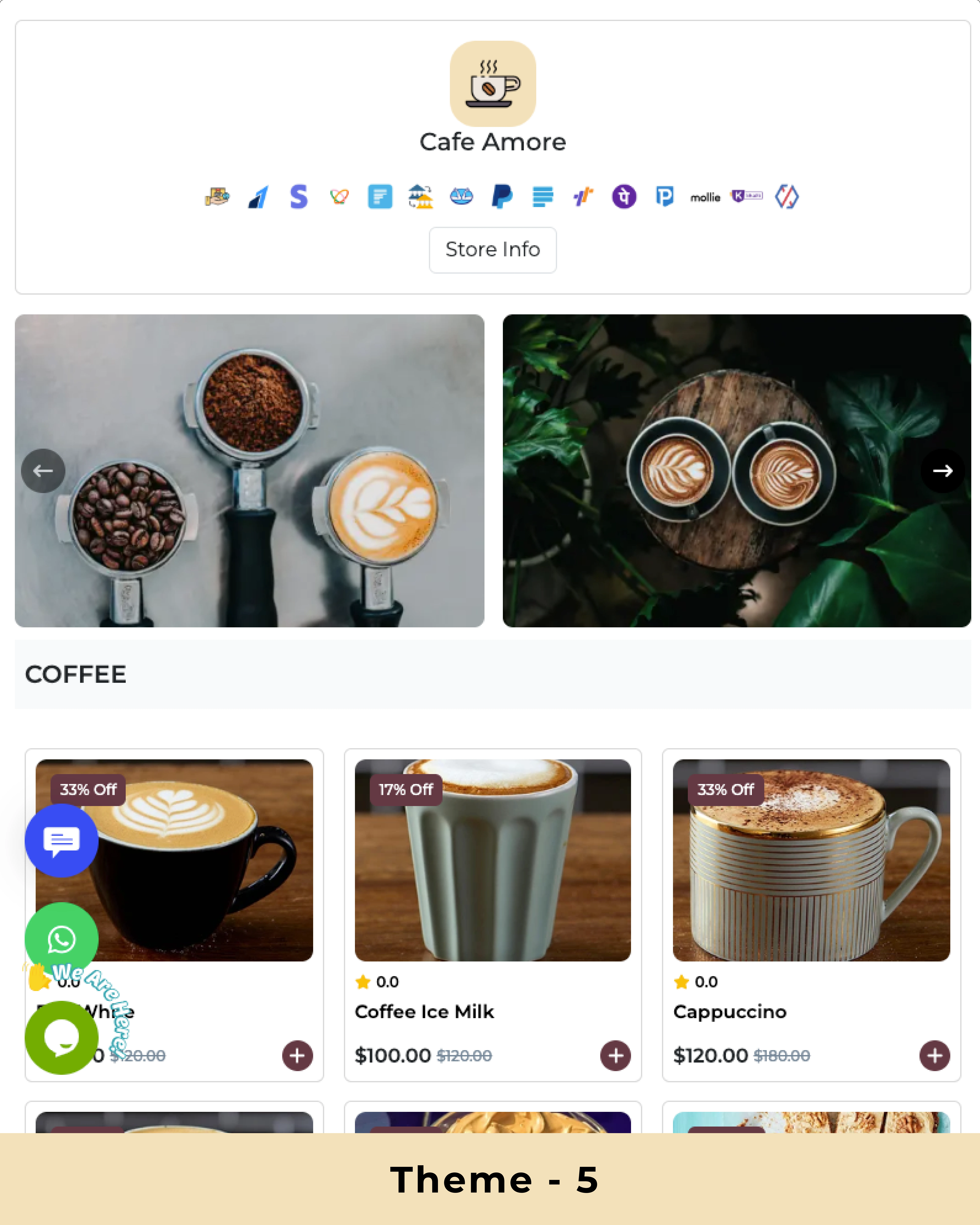 Prebuilt themes will help you to attract your customers. Customize theme colors & layout with Grid & list view.